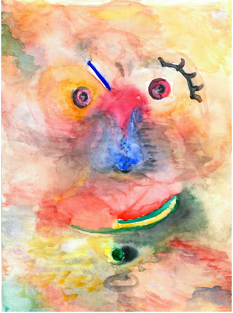 auf sein eigenes Portrait kritzelte: