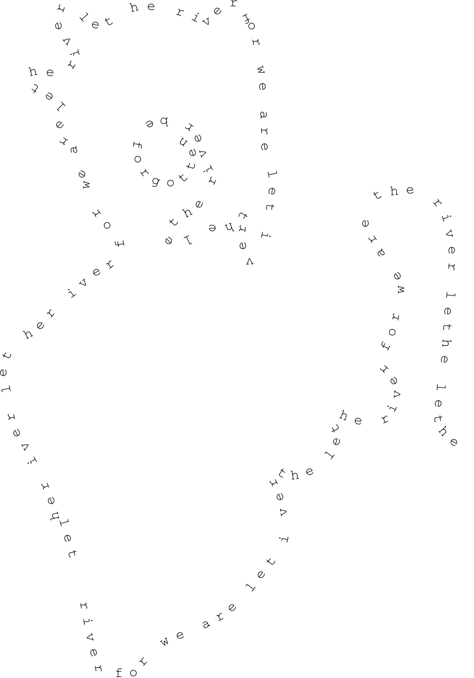 "Verschicke angefüllt einer Bitte, verstrickt in die Ströme des Netzes deine Post. Bevor dein Name Stuab werde in meinem Munde! Und die Sterne, sie altern nicht mehr vor jenem Grund."